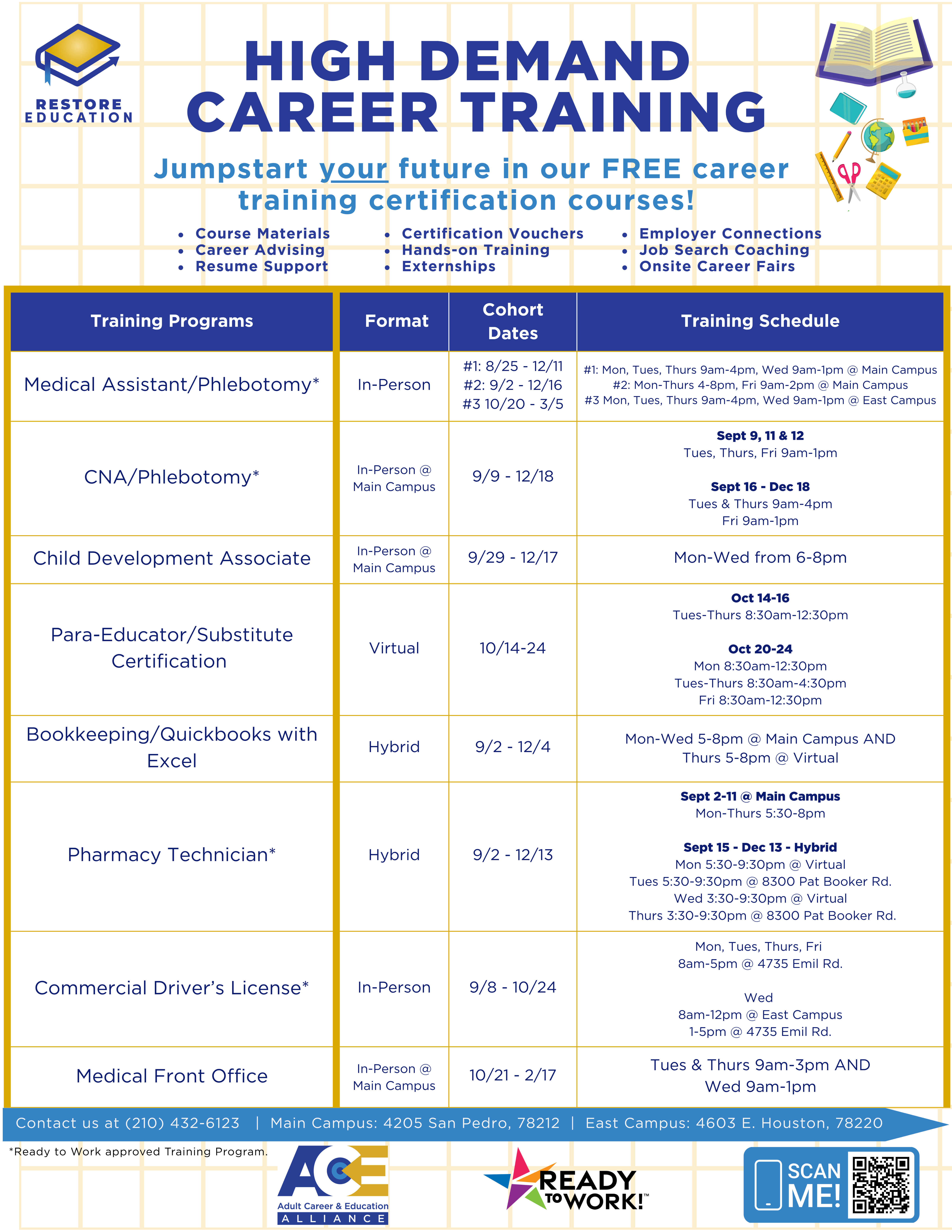 Restore Education has a career navigator team supporting students in multiple disciplines from developing a personal brand, resume building, cover letter writing, interview preparation, and more! Each student receives tips on how to network and secure references, develop a strong professional image, how to answer many interview questions, and activate job searches. With over 30 years of combined employment preparation experience working with workforce, college and adult learner students, we are committed to preparing you for career success.